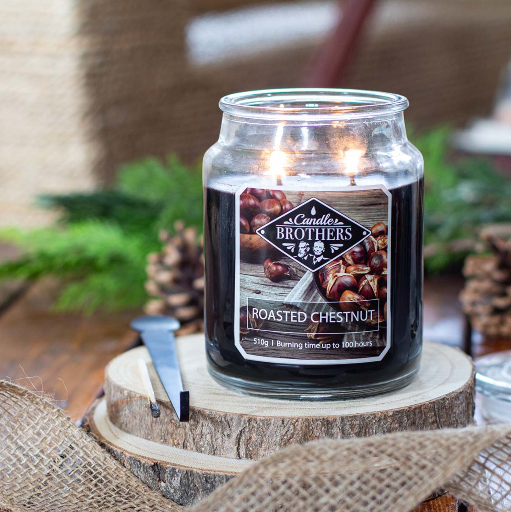 Die "Roasted Chestnut" Duftkerze hüllt Dein Heim mit einer Brenndauer von beeindruckenden 100 Stunden in den wohligen Duft gerösteter Maronen. Mit einer reichhaltigen Palette aus beerigen und holzigen Noten, abgerundet durch sanfte Gewürze und den warmen Hauch von Vanille und Moschus, ist sie die perfekte Ergänzung für kühle Herbst- und Wintertage.