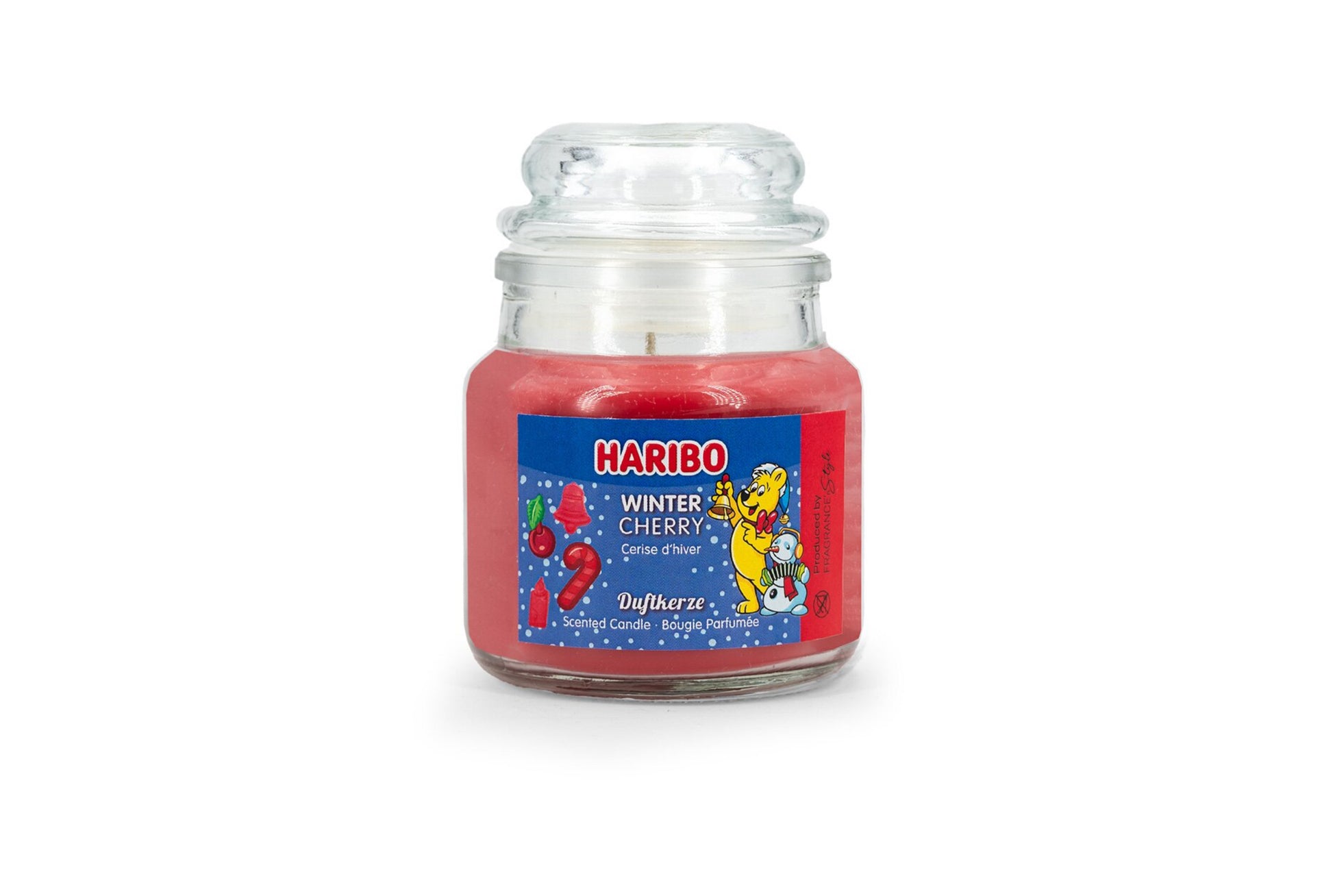 Die 3er Duftkerze "Haribo Winterland" entführt Sie auf eine olfaktorische Reise durch eine märchenhafte Winterlandschaft. Diese harmonisch abgestimmte Kollektion umfasst drei verlockende Düfte: "Winter Cherry", "Fluffy Clouds" und "Vanilla Waffle Cream".